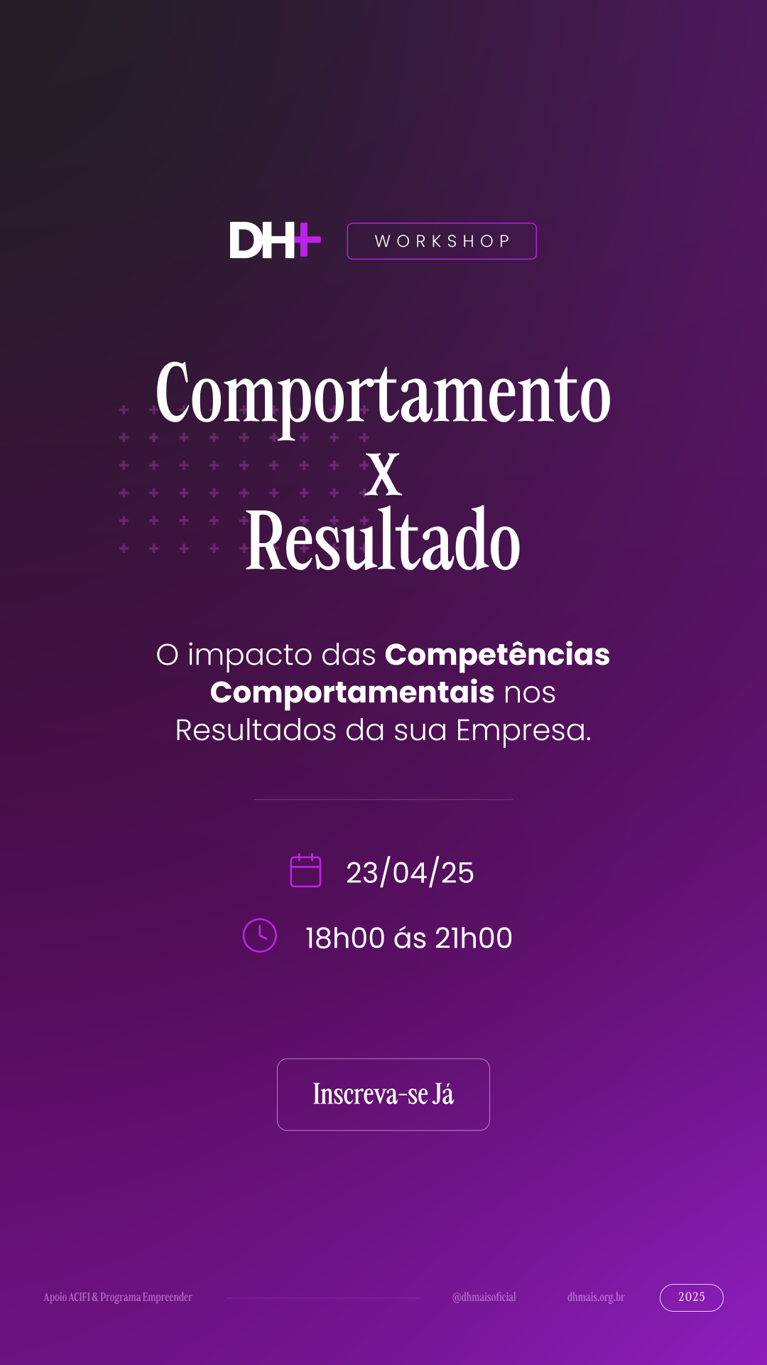 Acifi R. Padre Montoya, 490, Foz do IguaçuWorkshop COMPORTAMENTO X RESULTADO O impacto das Competências Comportamentais nos Resultados da sua empresa Os melhores resultados vêm de líderes preparados. Este workshop oferece um mergulho essencial no desenvolvimento de competências comportamentais, ajudando empresários, gerentes e diretores a engajar equipes, fortalecer a comunicação e impulsionar a performance organizacional. O que esperar? 4 encontros práticos e…